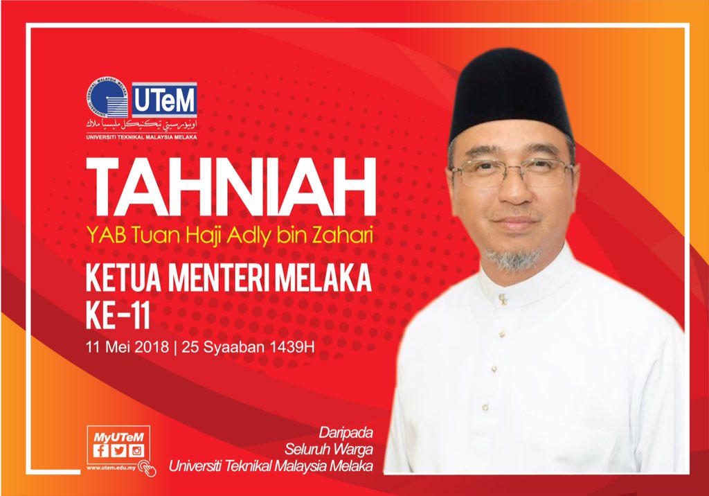 Utem Malaysia En Twitter Dari Melaka Bandaraya Warisan Dunia Setinggi Tinggi Tahniah Kepada Yab Tuan Hj Adly Bin Zahari Yang Telah Dilantik Menjadi Ketua Menteri Melaka Ke 11 Pada 11 Mei 2018 Tahniah Dari